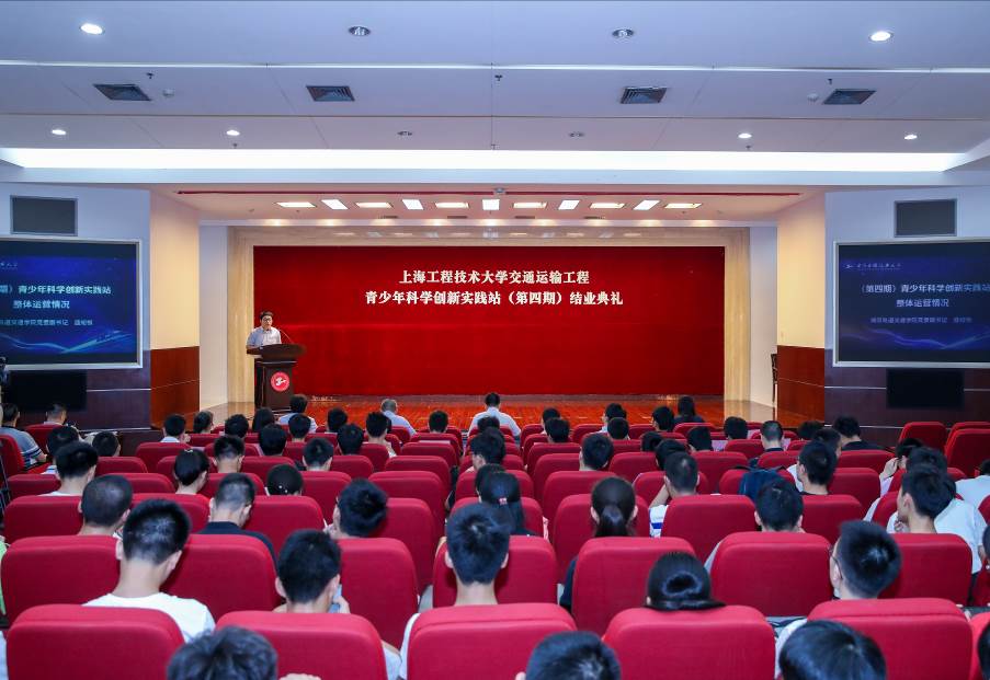 6月16日下午,上海工程技术大学交通运输工程青少年科学创新实践站举行第四期结业典礼。团市委学校工作部李骁髯、市科技艺术教育中心科技教育部副部长仓铁肩、徐汇团区委组织联络部部长张磊、松江区青少年活动中心副主任方敏芝、城市轨道交通学院党委副书记盛知恒、第四期实践站全体导师以及110余名学员出席了结业典礼。