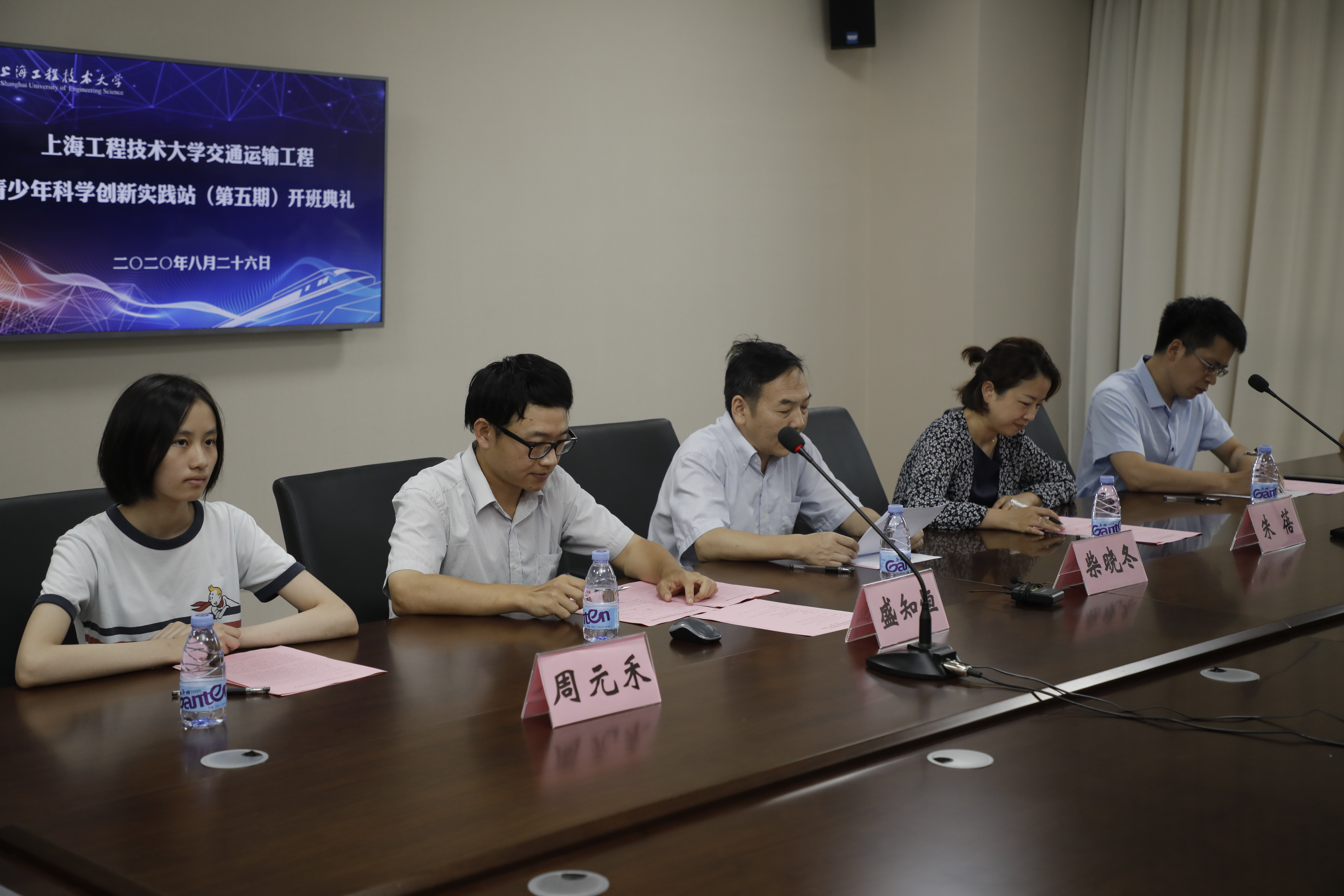 8月26日,2020年上海工程技术大学交通运输工程青少年科学创新实践站开班典礼在现代交通工程中心8A521会议室举行。校学生工作部(处)长、研究生工作部部长朱蓓,城市轨道交通学院党委书记柴晓冬、副书记盛知恒、中心实验室主任宋瑞刚,第四期实践站优秀学员、松江二中周元禾,全体导师和来自全市57所高中的95名学员们共同出席了本次开班典礼,开班典礼由学院党委副书记盛知恒主持。
