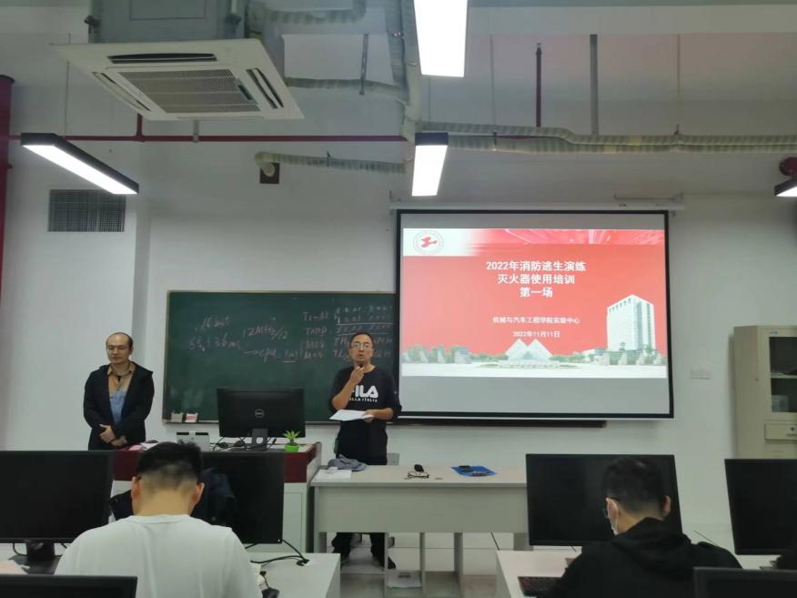 为进一步加强学院实验室安全工作,营造安全、稳定、和谐的校园环境,切实提高全院师生的消防安全意识,提高安全自救能力和自我保护能力,做到在发生火警火灾时,能临危不乱,有序迅速地按照消防逃生路线疏散,确保生命安全和学院的消防安全。本着坚持“珍爱生命,安全先行”的方针和“以人为本”的思想,机械与汽车工程学院于2022年11月11日下午13:00和下午15:00,分两场在现代交通工程中心举行了2022年下半年消防逃生演练暨灭火器实操培训,参加人员包括全体研一新生及实验室教师。