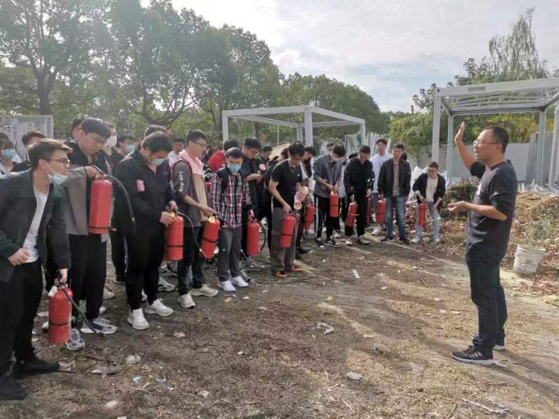 消防逃生演练结束后,带队老师带领全体同学赴体育馆西侧进行灭火器实操培训,吴挺老师现场演示了灭火器的使用,在场的同学进行演练操作,同学们在学习与演练的过程中进一步加深了对灭火器使用方法的理解与认识。