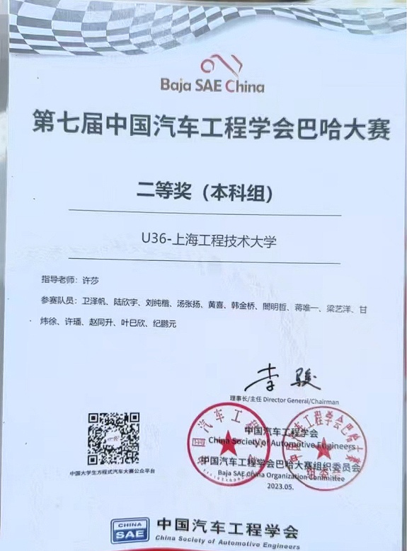 机械与汽车工程学院龙腾巴哈车队斩获第七届中国汽车工程学会巴哈大赛本科组二等奖
