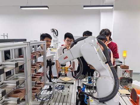 5月23日,“工业机器人综合实验”课程邀请了上海国诣机器人科技有限公司陈刚工程师对机器人实训过程进行指导。陈刚介绍了工业机器人结构以及整体机械和电气组成,并结合企业实际案例,向同学们展示了机器人示教编程方法,以及激光雕刻、码垛、打磨、视觉检测等功能的实际编程案例。通过工程师的编程示范,同学们迅速掌握了工业机器人编程的基本方法和典型应用。