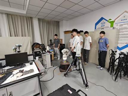 6月18日,“机器人性能测试与健康评估”课程邀请了国家机器人检测与评定中心高级工程师朱晓鹏开展课程实验讲解与专项指导。朱晓鹏围绕机器人性能检测核心模块,系统讲解了机器人运动学标定的模型构建原理,深化了同学们对机器人位置控制理论的认知,以及对机器人标定与位置测试的实际操作方法的理解。