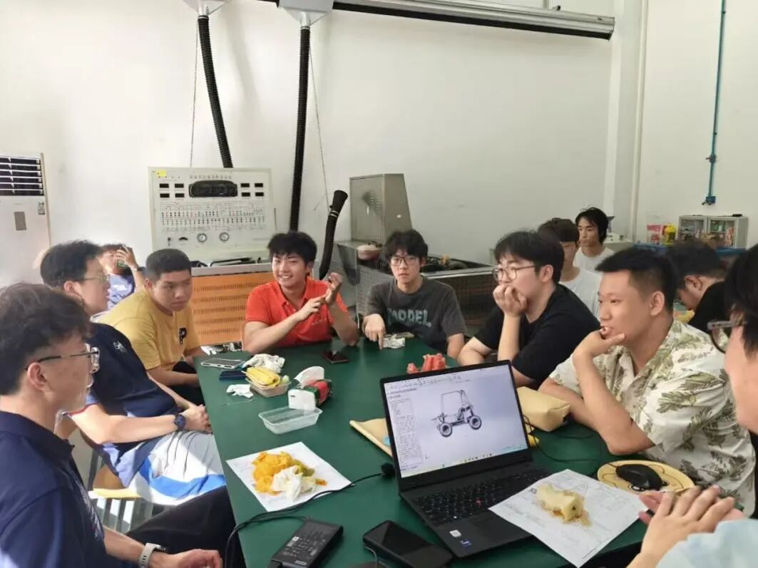 双方队员积极分享经验,探讨车队运营与备赛心得,现场氛围轻松而热烈。指导老师也全程参与交流,为队员们提供了宝贵的建议。