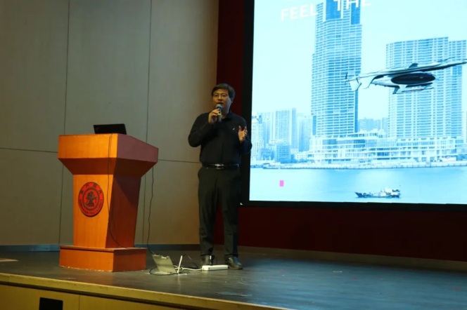 上海峰飞航空科技有限公司高级副总裁谢嘉为同学们带来题为电动垂起改变世界的精彩报告,近年来,随着科技的飞速发展,“空中出租车”这一概念逐渐从科幻电影走进了现实。作为未来交通领域的一颗璀璨新星,eVTOL正引领着一场前所未有的出行革命。那么,飞行出行离我们到底有多远?报告中,谢总为同学们系统阐释eVTOL对全球交通体系、城市生活方式以及低空经济的颠覆性变革;重点从电动化、垂直起降、全自主飞控三大技术革命,应用场景、商业价值三大维度展开论述,揭示eVTOL如何成为未来出行的核心引擎。最后,谢总为同学们展示了eVTOL “跨海城际交通、城市空中观光、应急救援”三个不同场景的视频,他指出随着技术成熟与空域管理创新,eVTOL将成为连接人与城市、现实与梦想的空中纽带,开启人类出行的新纪元。