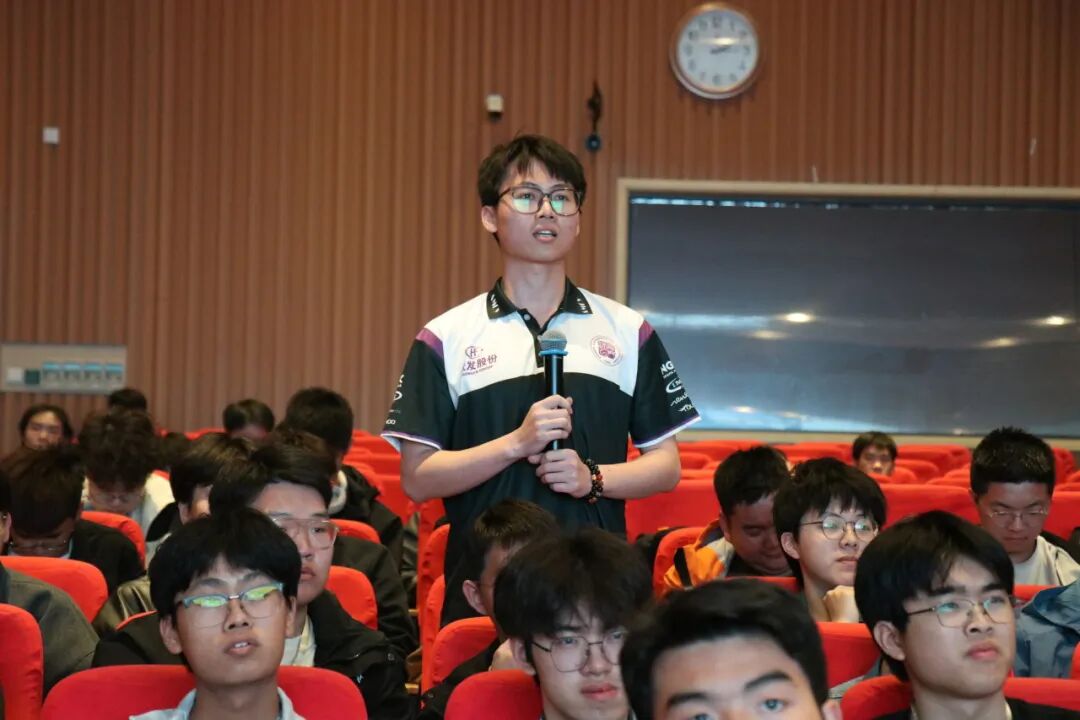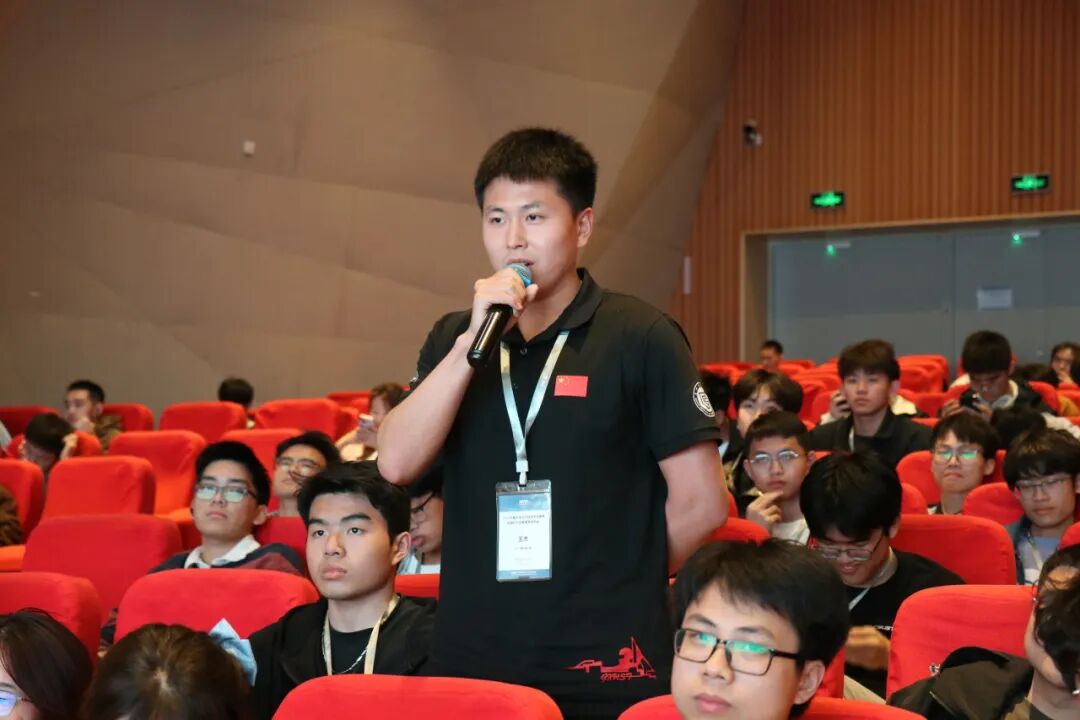 活动交流环节,在上海交通大学来自全国各地的100余位骨干科技社团成员围绕“科技社团如何助力大学生科技创新”参与沟通交流,同学们分享了参与科技社团的挑战和收获,通过交流拓宽了视野,增强了利用社团资源突破技术瓶颈的信心,也为跨校沟通交流提供了重要的平台。在上海工程技术大学来自机械与汽车工程学院的学生代表们与上海银基科技股份有限公司首席执行官单宏寅、上海峰飞航空科技有限公司高级副总裁谢嘉围绕“数字钥匙安全性如何保障”、“飞行汽车商业化难点是什么”等问题与专家们进行了详细的沟通交流,同学们在技术认知,创新思维等方面有所启发,为投身智能网联汽车与低空经济领域奠定基础。