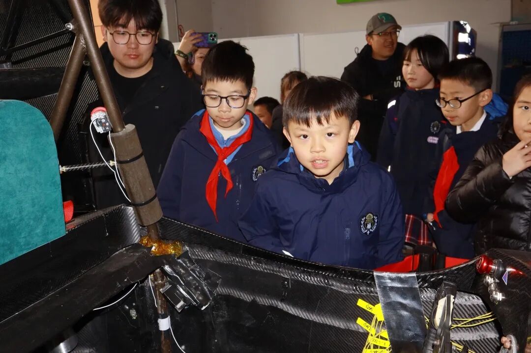 队员还为同学们演示了赛车模拟器的操作,在他们心中种下了一颗赛车梦的种子,这次参观不仅让孩子们近距离感受了科技的魅力,更在他们心中种下了梦想的种子。感谢车队成员的耐心讲解,期待未来在赛场上看到更多中国青年的创新力量!